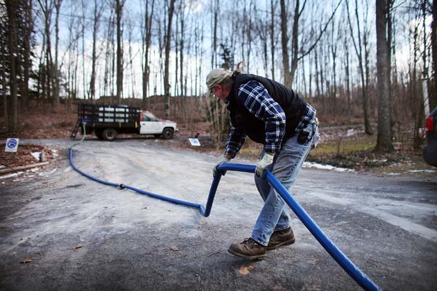 Ray Kemble delivers fresh water to a home that had their water contaminated due to hydraulic fracturing on Jan. 18, 2012 in Dimock, Pa. Photo by Spencer Platt/Getty Images.