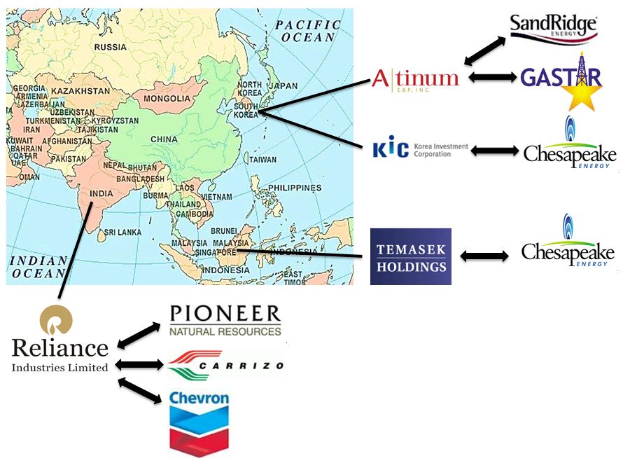 Pioneer Natural Resources - Reliance Industries Limited (RIL) (India): Reliance Industries buys 45 percent of Pioneer Natural Resources shale gas venture for $1.3 billion Eagle Ford Shale.