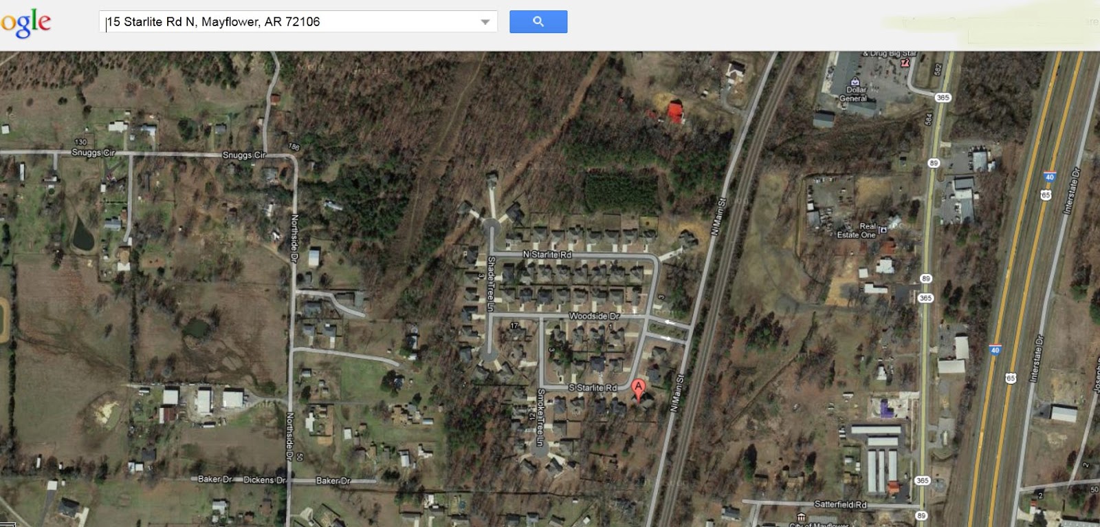 | This is the Northwood subdivision near Starlite Rd. North. Notice the pipeline runs right under some houses in the upper left of the subdivision. |