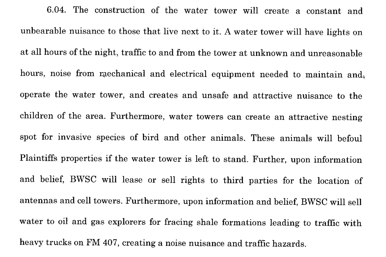 He and his neighbors had filed suit to block the tower, saying it is illegal and would create “a noise nuisance and traffic hazards,” in part because it would provide water for use in hydraulic fracturing. Fracking, which requires heavy trucks to haul and pump massive amounts of water, unlocks oil and gas from dense rock and has helped touch off a surge in U.S. energy output.
