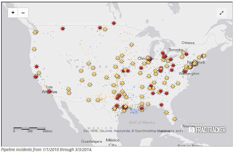 Recently, the FracTracker Alliance updated their database. A year ago, they calculated that there was an average of 1.6 pipeline incidents per day in the United States. That figure remains accurate, with 2,452 recorded incidents between January 1, 2010 and March 3, 2014, a span of 1,522 days.