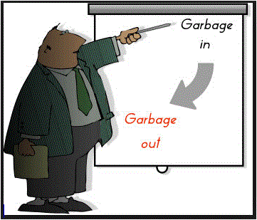 Anyone working with databases or modeling software would be familiar with the acronym GIGO. GIGO stands for Garbage In-Garbage Out. Briefly it means if the input data is garbage, the output data will also be garbage.