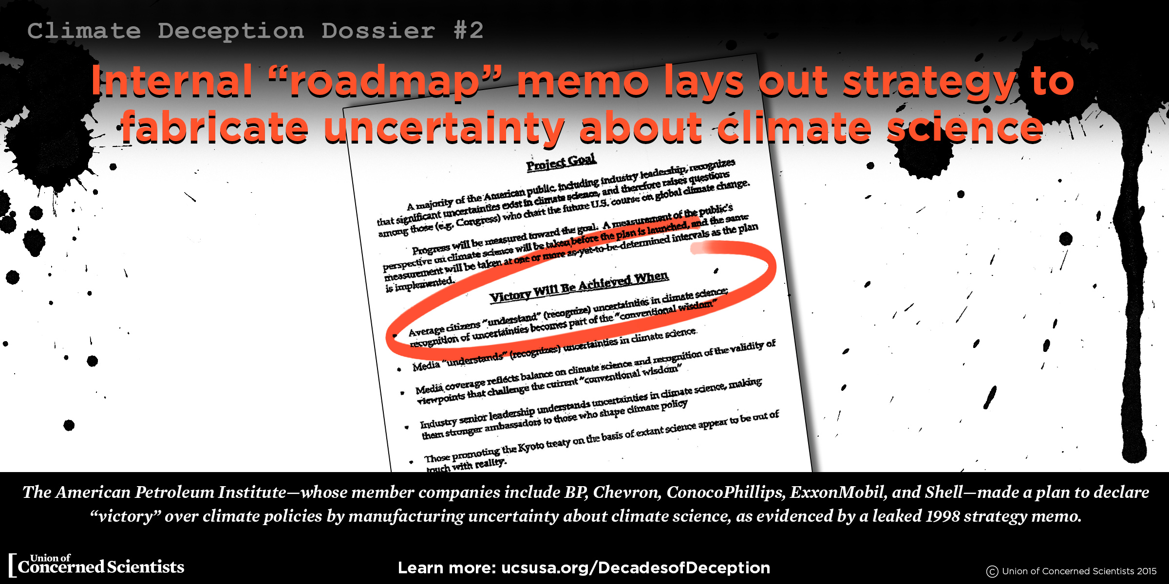 - Deception Dossier #2: American Petroleum Institute’s “Roadmap” Memo