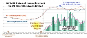 Marcellus Shale Gas Jobs? Data tells a different story This morning I decided to look into the claim that Marcellus Shale-Gas extraction will bring jobs to New York. Wherever possible, I like to go to original sources of data. Here are the data sources for this graph: PA Drilling Data (data first reported Jan '09) http://www.portal.state.pa.us/portal/server.pt/community/marcellus_shale/20296 Unemployment Data: … [Read more...] about About all those Shale Gas “JOBS!”: Actual Data Tells Something Different